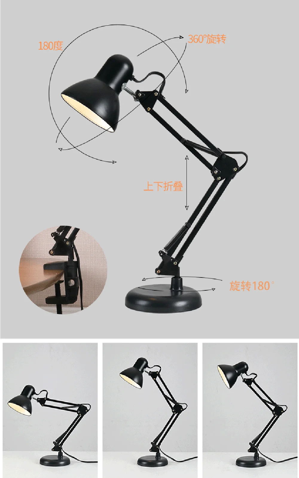 E27 Desktop  LED Desk Lamp Eye Protection Night Light Adjustable clip-On Study  Flexible Folding Bedroom Reading Lamp
